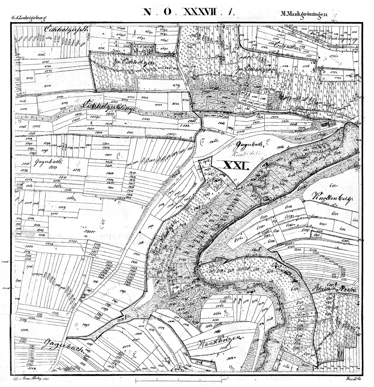 Raiserhof beim ehemaligen Eichholz auf der Urflurkarte NO 37.01 von 1831 |