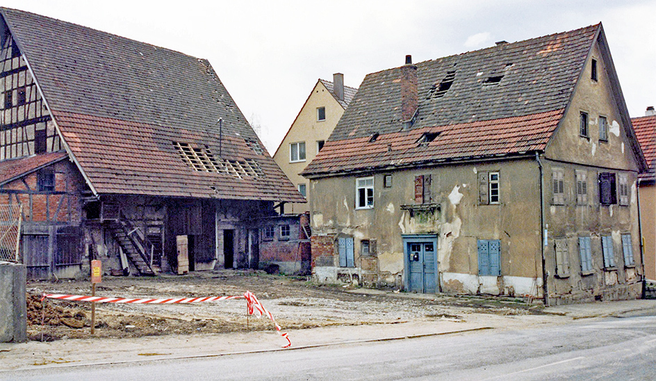 Haus, Scheuer und Stall von Gustav und Katharine Bäßler, Grabenstraße 33, wurden 1991 für den Neubau von Getränke Trautwein abgerissen. |