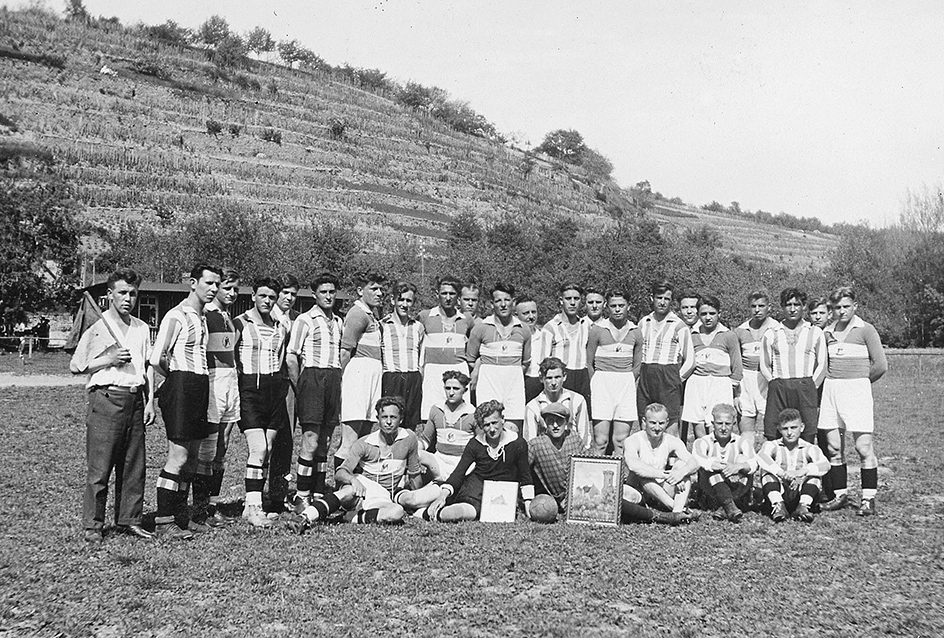 FVM-Mannschaft der Gründerzeit mit Funktionären im Glemstal |