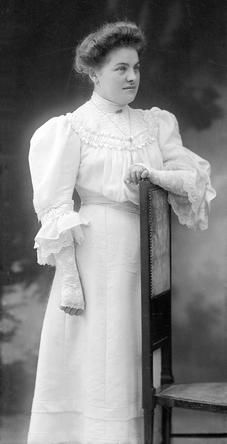 Links: 1908 heiratete die in Markgröningen geborene Sofie Krämer in hochgeschlossenem Schwarz den Maurer August Hasenauer aus Schwieberdingen. Sofie war Weberin in der Seide. |