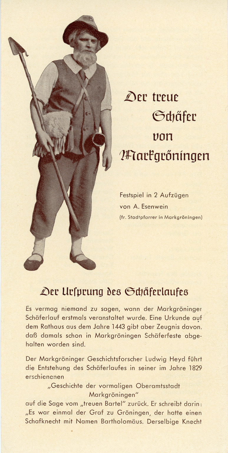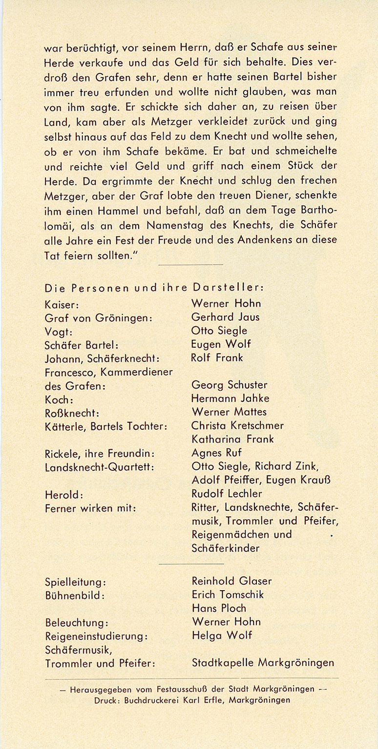 Festspiel-Flyer aus den 1960er Jahren mit Eugen Wolf als Barthel auf dem Titel und Darstellerverzeichnis auf der Rückseite |