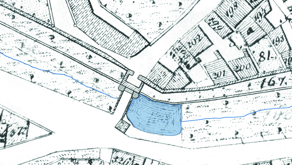 Unteres Tor mit Zollhäusle und Feuerteich auf der Urflurkarte von 1831 (retuschiert) Quelle: Staatl. Vermessungsamt Bietigheim