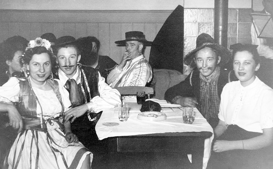 Fasnetsball 1954 im Gasthof zur Post. Motto Exotik und Fernweh: Zigeuner-, Torero und Cowboy mit Partnerinnen