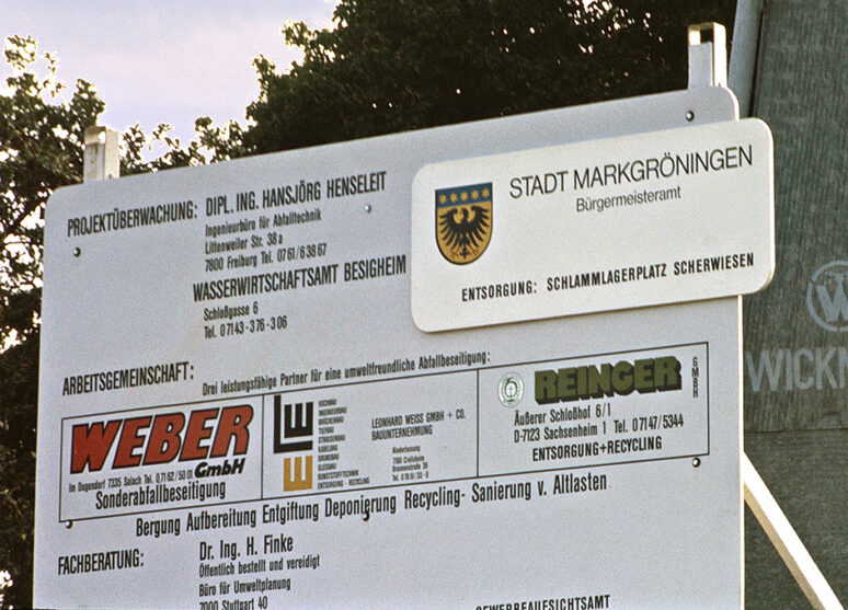 Info-Tafel zur Sanierung des u.a. mit CKW verseuchten Schlammlagerplatzes Scherwiesen 1986 |
