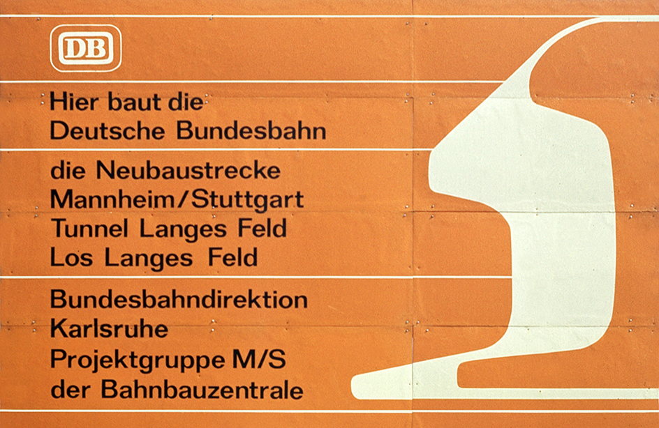 Bautafel der Deutschen Bundesahn zum Bau des Tunnels Langes Feld |
