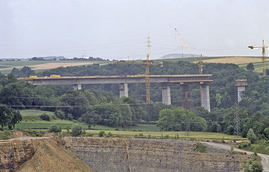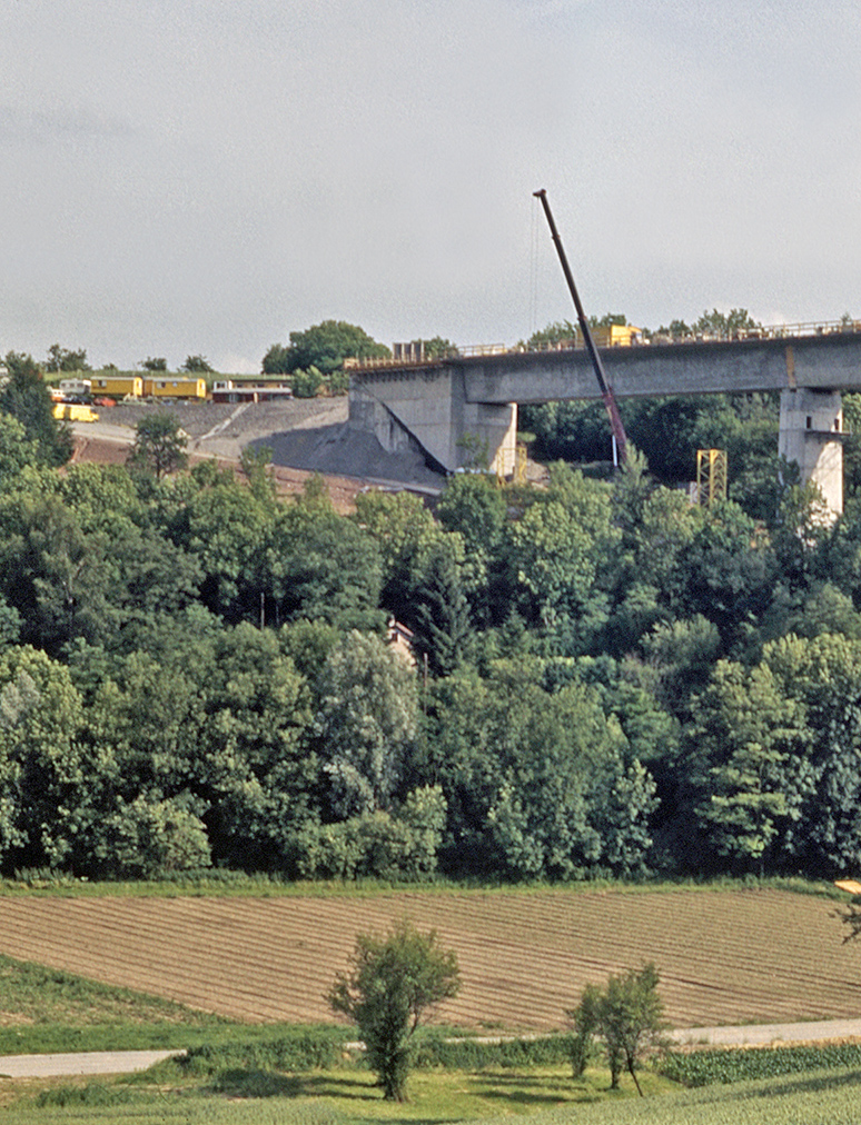Glemstalbrücke 1986 von Norden. Vorerst wurde sie als Baustraße benutzt. |