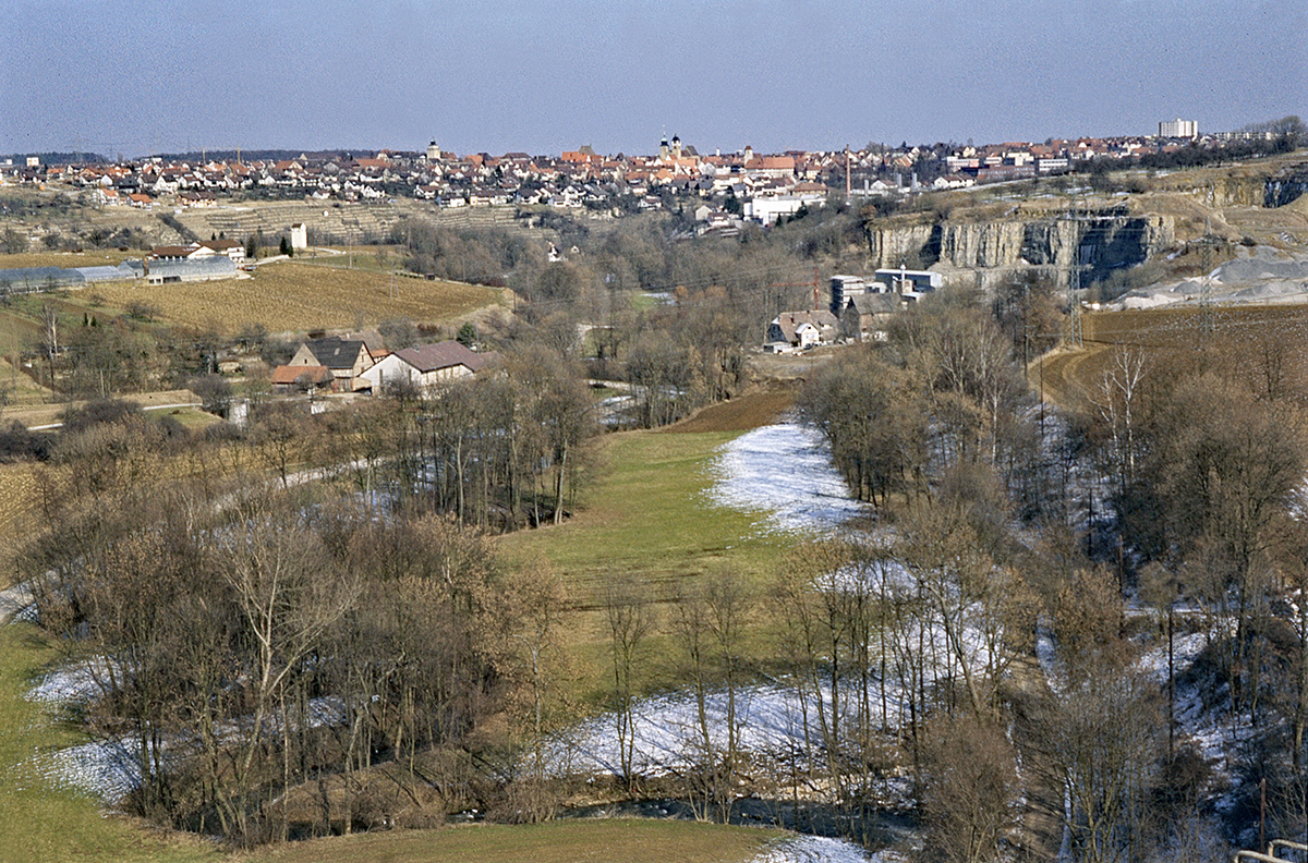 Baugebiet Hart A und Glemstalbrücke 1991 vom Wasserturm |
