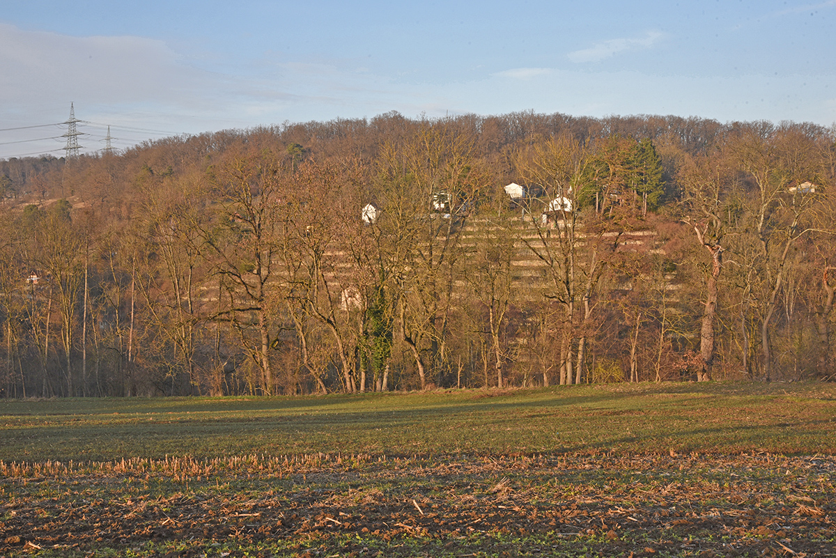 Blick vom Oberen Wannenberg auf das Gruppenklärwerk und die Sauhälde im Leudelsbachtal |