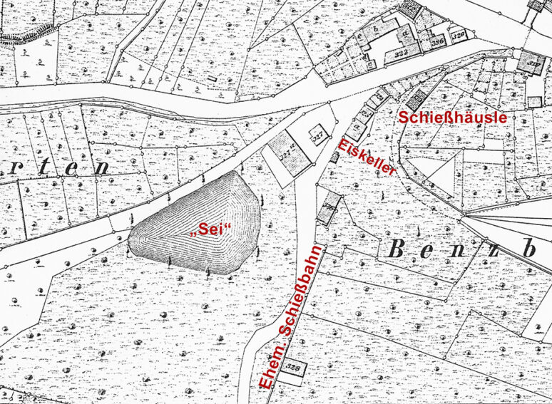 Ehemalige Schießbahn am Schäferweg auf der Urflurkarte von 1831 Bild: Peter Fendrich Quelle: Staatsarchiv LB